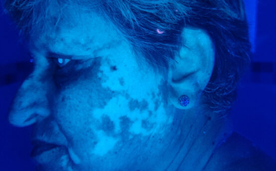 On physical examination, circumscribed depigmented patches were observed, affecting both cheeks (Figure 1), forehead and between the eyebrows, as well as both arms. The lesions became more clearly visible when examined under Wood’s lamp (Figure 2).